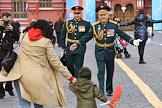 Генеральная репетиция парада, посвященного 76-й годовщине Победы в Великой Отечественной войне, на Красной площади. Военнослужащие парадных расчетов перед началом генеральной репетиции парада. Жанровая фотография. Фотографы во время съемки парада.