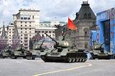 Генеральная репетиция парада, посвященного 76-й годовщины Победы в Великой Отечественной войне, на Красной площади. Танк Т-34-85 во время генеральной репетиции парада.