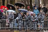 Генеральная репетиция парада, посвященного 76-й годовщины Победы в Великой Отечественной войне, на Дворцовой площади в Санкт-Петербурге. Жанровая фотография. Зрители и сотрудники Росгвардии во время генеральной репетиции парада.