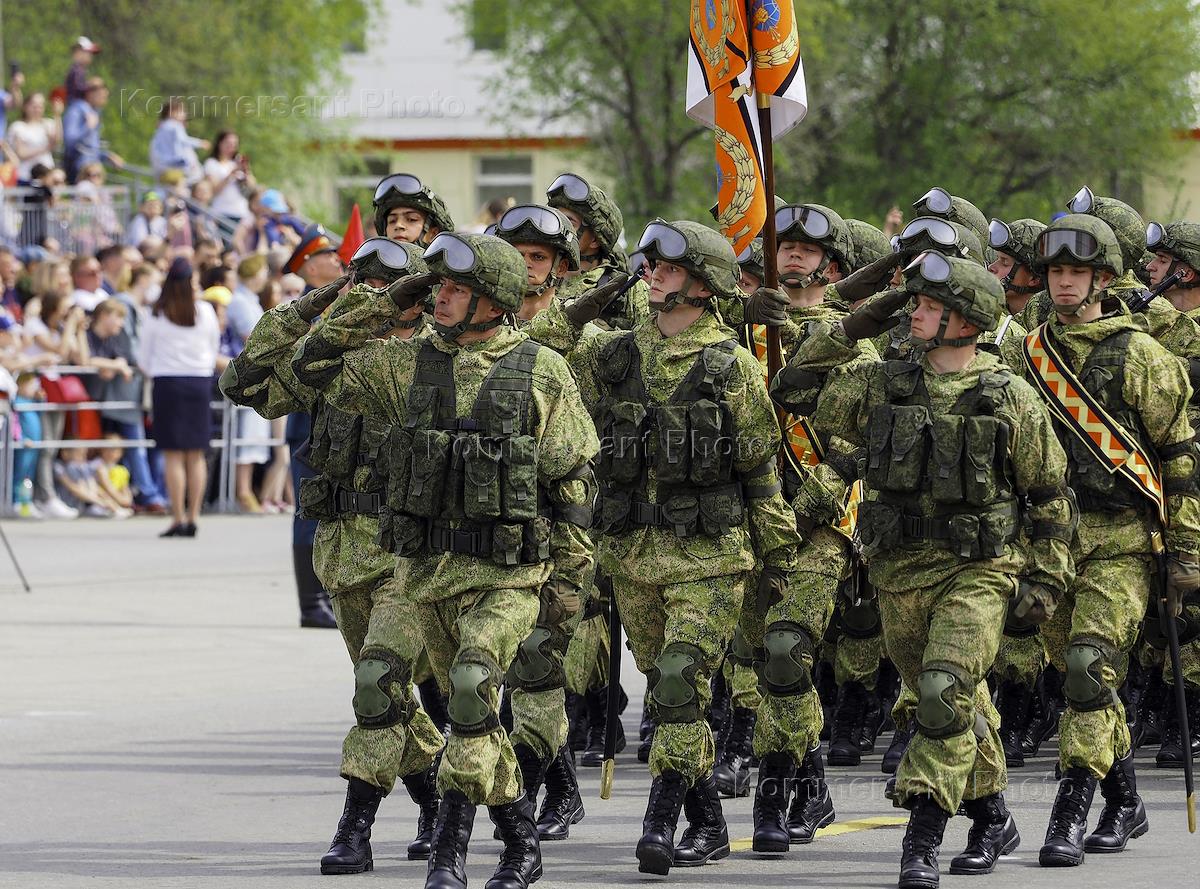 Празднование Дня Победы. Парад военной техники времен Великой Отечественной войны прошел на Успенском проспекте. В торжественном шествии приняли участие раритетные экспонаты музейного комплекса Уральской горно-металлургической компании (УГМК): бронеавтомобили, самоходные и прицепные артиллерийские орудия и танки, участвовавшие в реальных боевых действиях. Военнослужащие вов ремя парада.