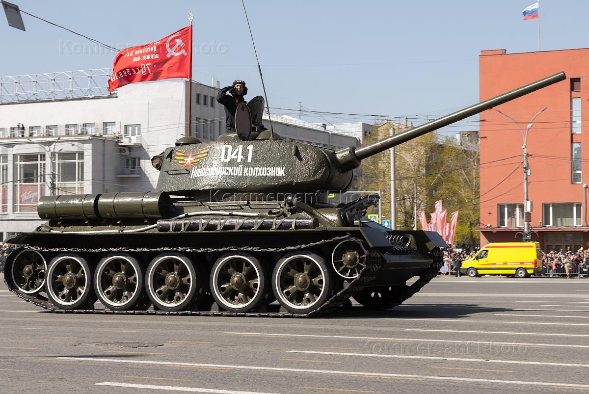 Военный парад, посвященный 76-й годовщине Победы в Великой Отечественной войне, прошел на площади Ленина. Восстановленный танк Т-34 "Новосибирский колхозник" во время парада.
