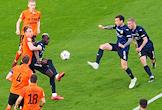 Российская Премьер-Лига (РПЛ). Тинькофф - Чемпионат России по футболу 2020/2021. 29-й тур. Матч между командами "Урал" (Екатеринбург) и "Ростов" (Ростов-на-Дону) прошел на стадионе "Екатеринбург Арена". ИГрок команды "Урал" Бранко Йовичич(в центре) и игрок команды "Ростов" Кэнто Хасимото (справа) во время матча.