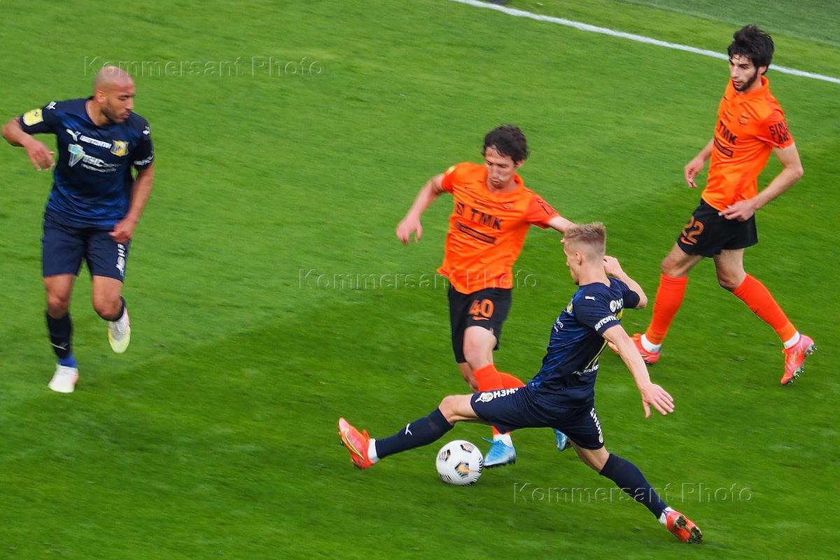 Российская Премьер-Лига (РПЛ). Тинькофф - Чемпионат России по футболу 2020/2021. 29-й тур. Матч между командами "Урал" (Екатеринбург) и "Ростов" (Ростов-на-Дону) прошел на стадионе "Екатеринбург Арена". Игрок команды "Урал" Рамазан Гаджимурадов (в центре) во время матча.
