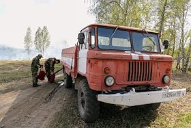 Специалисты лесопожарного формирования искитимского лесничества во время тушения пожара в Искитимском районе.