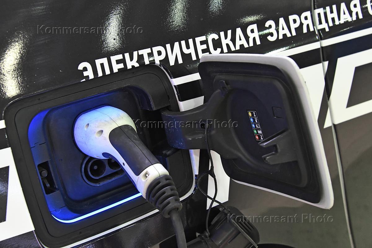 Церемония открытия 4-ого Российского автобусного салона CityBus в "Экспоцентре" на Красной Пресне. Стенд устройст для электрозадки городских автобусов. Электрическая зарядная станция.