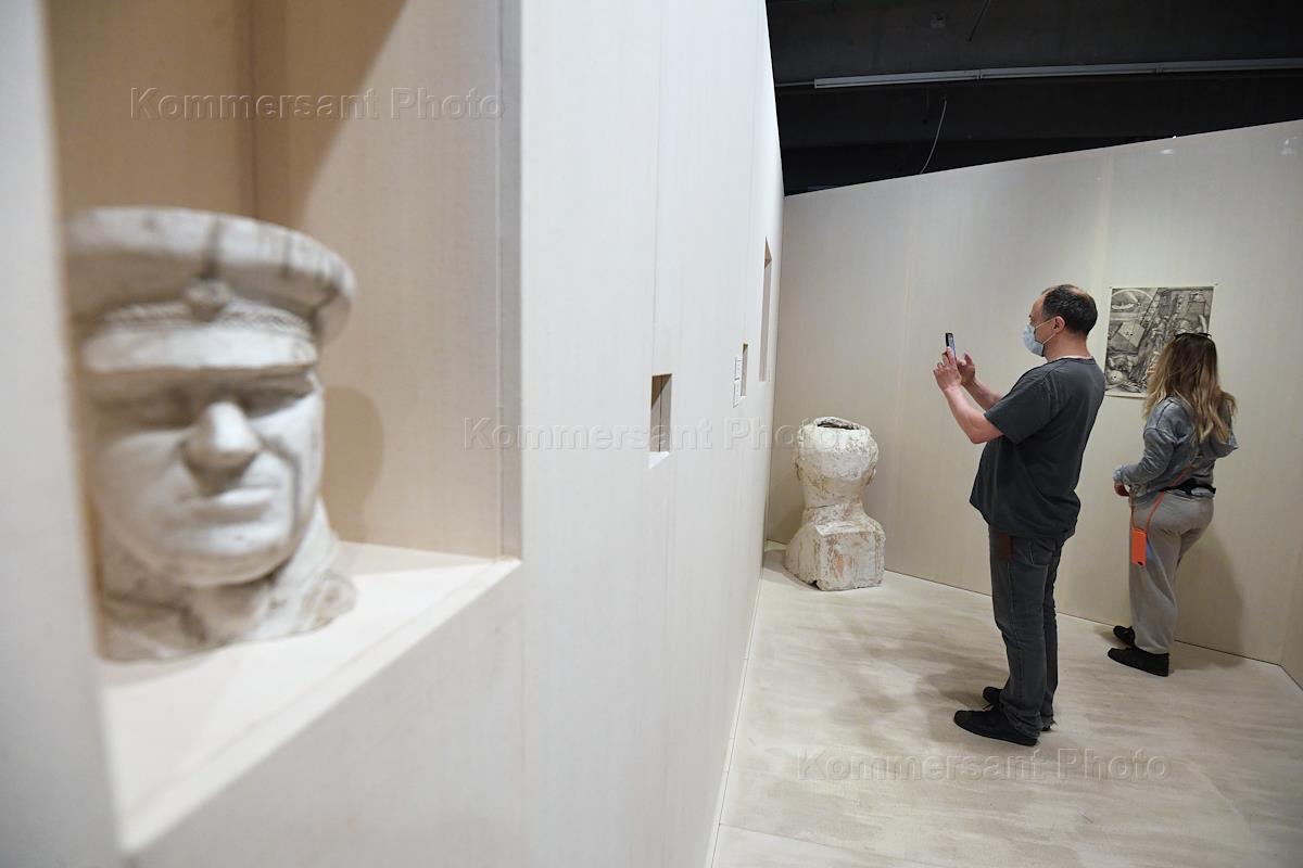 Выставка "Выбирая дистанцию: спекуляции, фейки, прогнозы в эпоху коронацена" в Музее современного искусства "Гараж". Посетители на выставке.