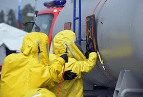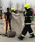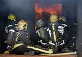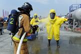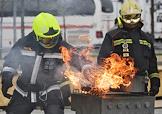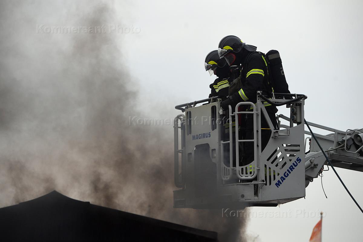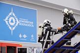 Международный салон "Комплексная безопасность 2021" в Конгрессно-выставочном центре "Патриот". Сотрудники МЧС России во время показательных занятий по тушению возгораний.