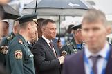 Международный салон "Комплексная безопасность 2021" в Конгрессно-выставочном центре "Патриот". Министр России по делам гражданской обороны, чрезвычайным ситуациям и ликвидации последствий стихийных бедствий Евгений Зиничев (в центре) во время посещения салона.