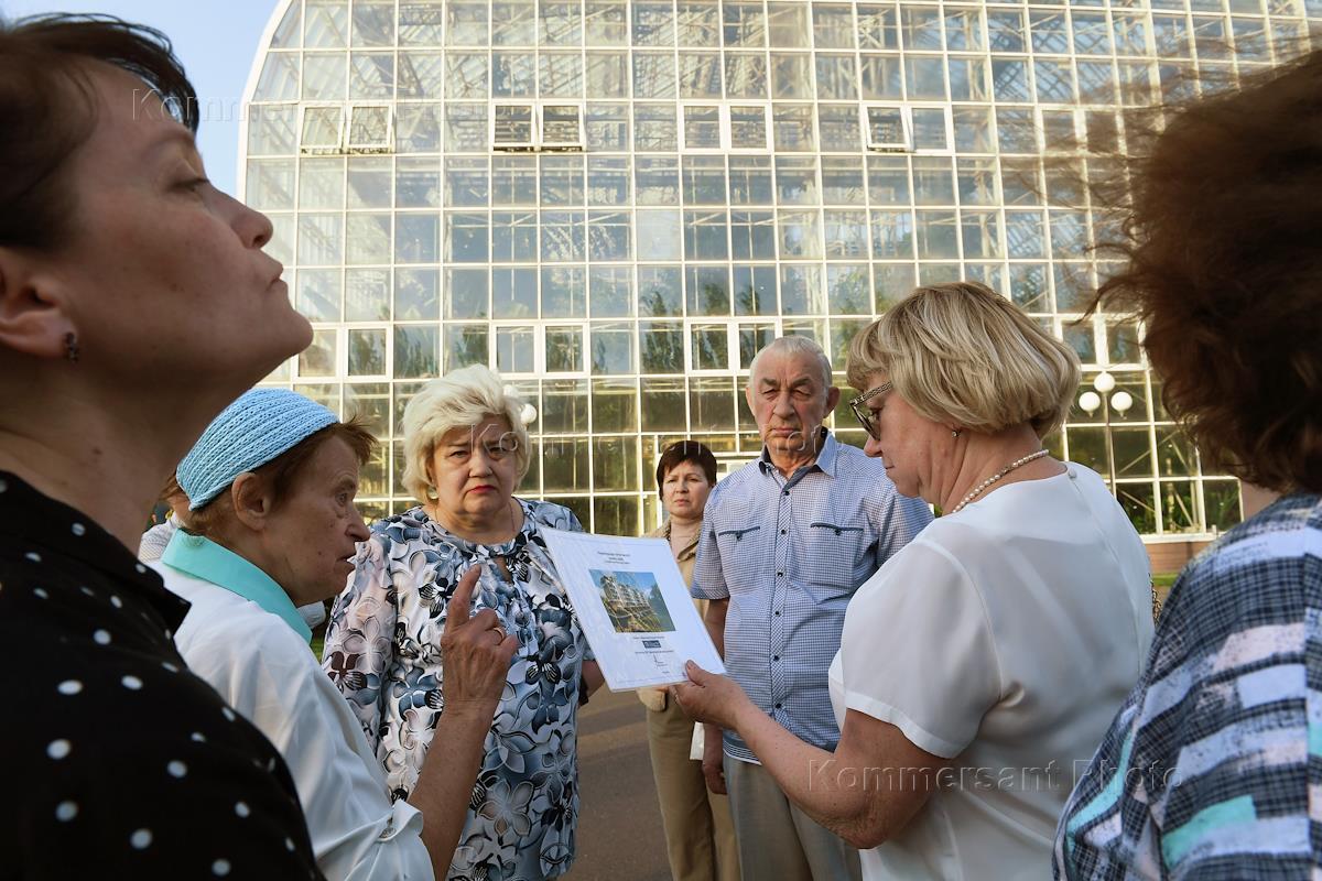 Встреча члена Центрального комитета КПРФ, первого заместителя председателя комитета Государственной думы России по делам национальностей Валерия Рашкина с избирателями по вопросам экологии, градостроительной политике и социально-экономических прав граждан и в защиту Главного Ботанического сада РАН возле здания новой оранжереи ГБС имени Цицина. Участники перед началом встречи.