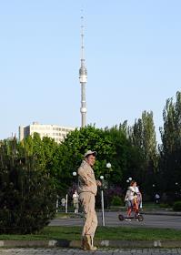 Виды Москвы. Жанровая фотография. Сотрудник охраны парков Москвы во время дежурства в Главном Ботаническом саду (ГБС) имени Цицина.