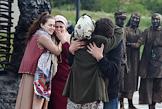 Траурные мероприятия в память о депортированных народах Крыма прошли на территории мемориального комплекса на железнодорожной станции Сирень в Бахчисарайском районе. Отсюда 18 мая 1944 года были отправлены первые эшелоны в Среднюю Азию, Сибирь и на Урал с представителями крымско-татарского народа. Жанровая фотография. Сотрудники полиции во время траурных мероприятий.