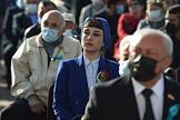 Траурные мероприятия в память о депортированных народах Крыма прошли на территории мемориального комплекса на железнодорожной станции Сирень в Бахчисарайском районе. Отсюда 18 мая 1944 года были отправлены первые эшелоны в Среднюю Азию, Сибирь и на Урал с представителями крымско-татарского народа. Жанровая фотография. Участники во время траурных мероприятий.