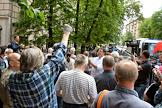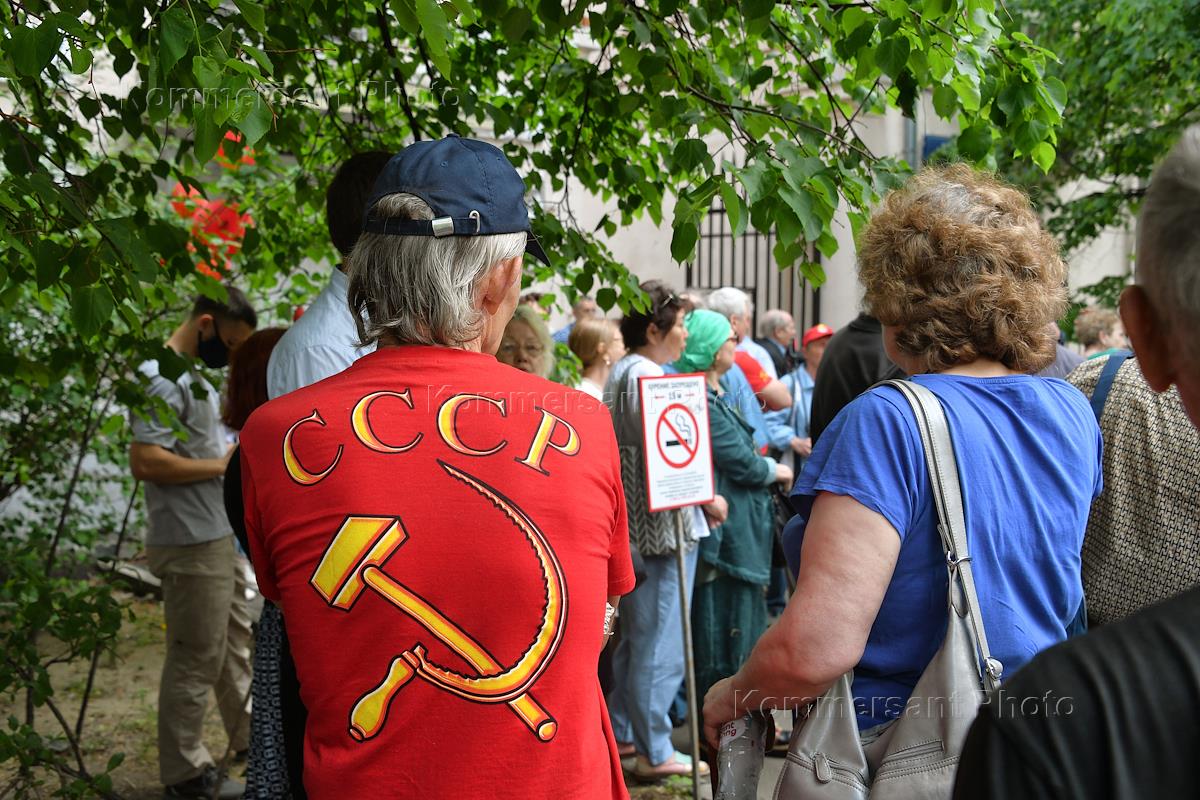 Вынесение приговора лидеру движения "За новый социализм" Николаю Платошкину по делу о призывах к массовым беспорядкам и публичном распространении заведомо ложной информации в Гагаринском районном суде. Сторонники движения "За новый социализм" у здания суда.