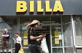 Жанровая фотография. Супермаркет Billa. Вывеска над входом в супермаркет.