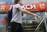 Жанровая фотография. Супермаркет "Перекресток". Вывеска кафе "Донер кебаб" над входом в супермаркет.
