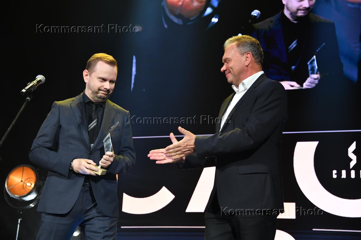 Церемония вручения сценарной премии "Слово" прошла в Театре имени Пушкина. Продюсеры Антон Малышев (слева) и Александр Роднянский (справа) на церемонии.