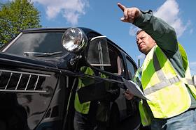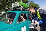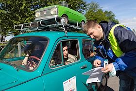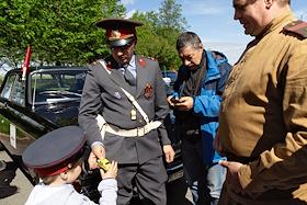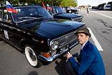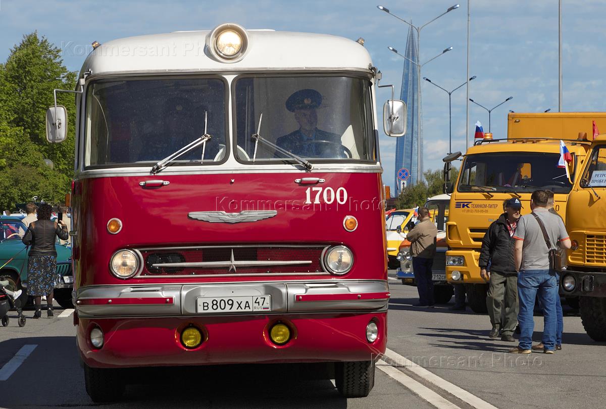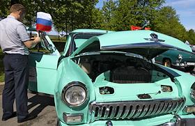 День города в Санкт-Петербурге. II международный транспортный фестиваль SPbTransportFest. Парад ретро-транспорта. Участник фестиваля на Морской набережной.