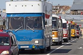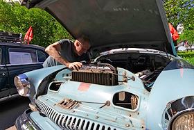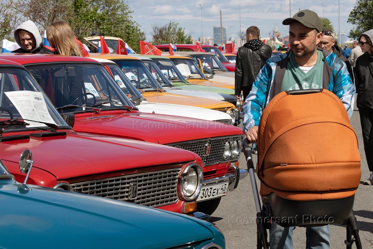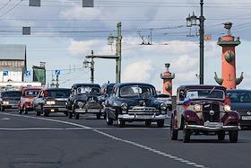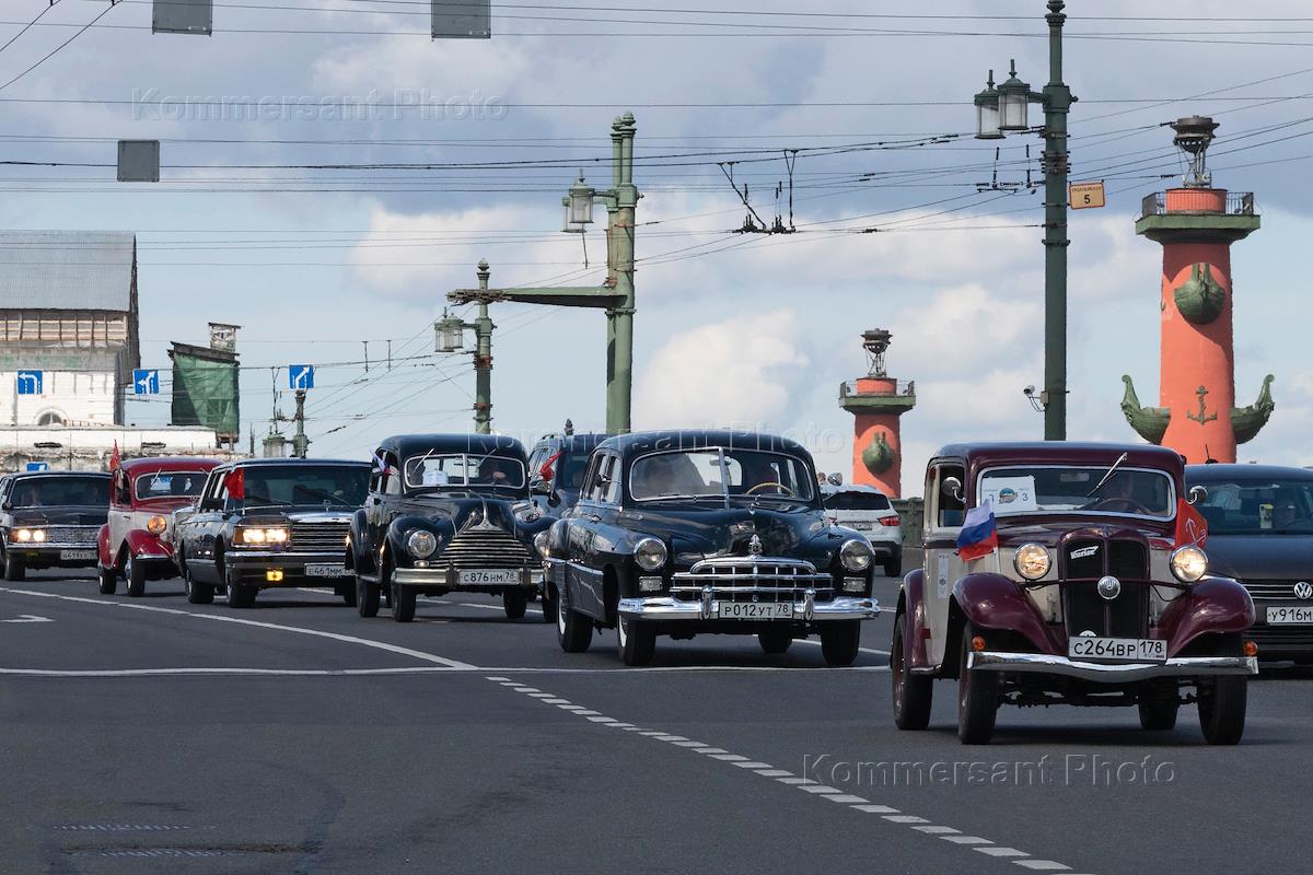 День города в Санкт-Петербурге. II международный транспортный фестиваль SPbTransportFest. Парад ретро-транспорта. Сбор участников фестиваля на Морской набережной.