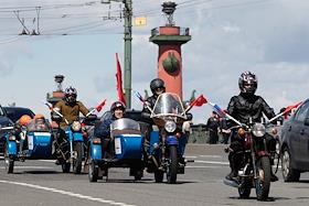 День города в Санкт-Петербурге. II международный транспортный фестиваль SPbTransportFest. Парад ретро-транспорта. Проезд колонны по Дворцовому мосту.