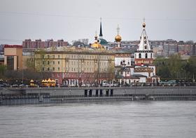 Экологический пресс-тур на Байкал. Виды Иркутска. Жанровая фотография. Богоявленская церковь на Нижней набережной реки Ангары.