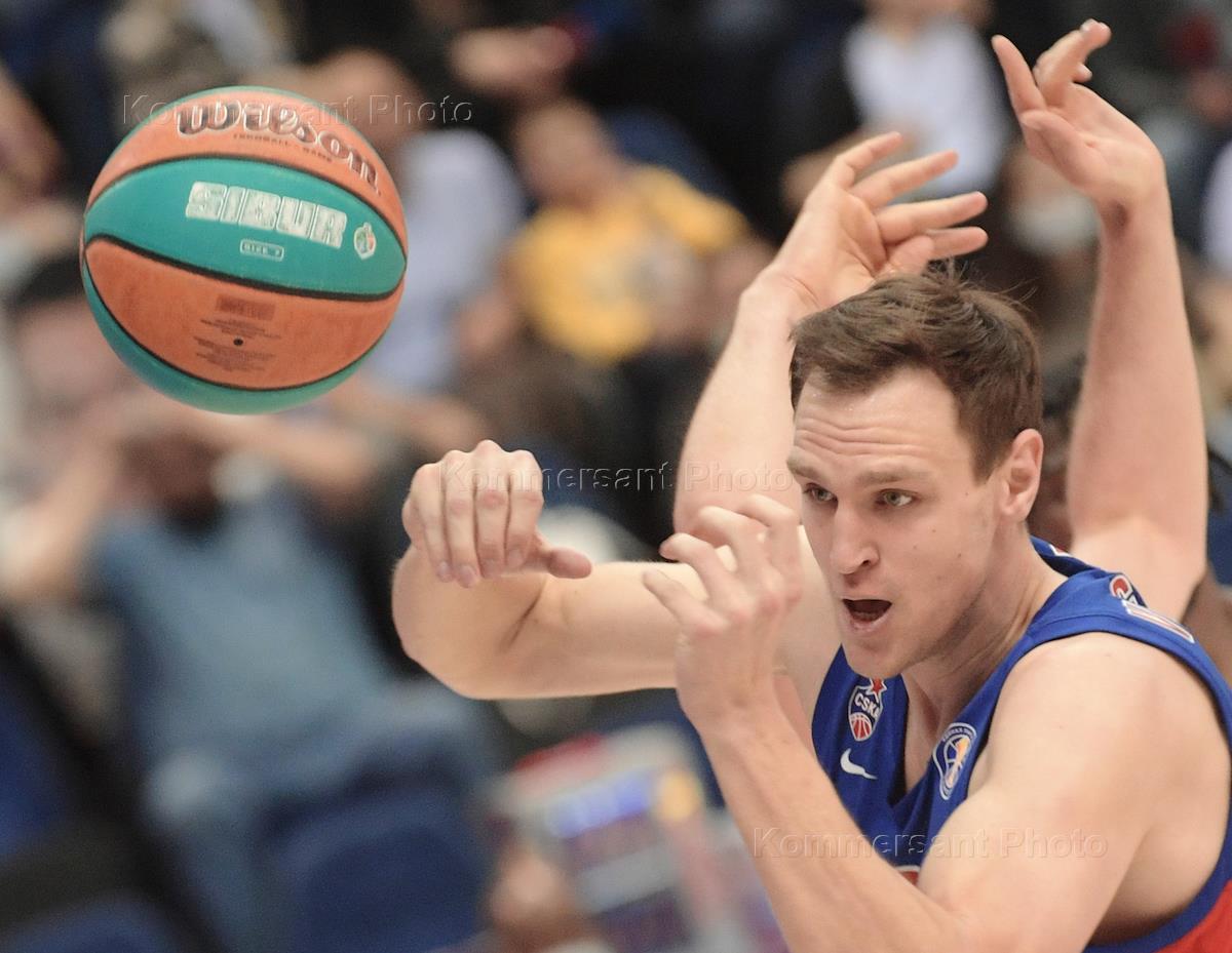 Единая лига ВТБ по баскетболу. Play-off полуфинал. Матч между командами ЦСКА (Москва) - "Зенит" (Санкт - Петербург) в УСКА ЦСКА. Игрок команды ЦСКА Йоханнес Фогтманн во время матча.