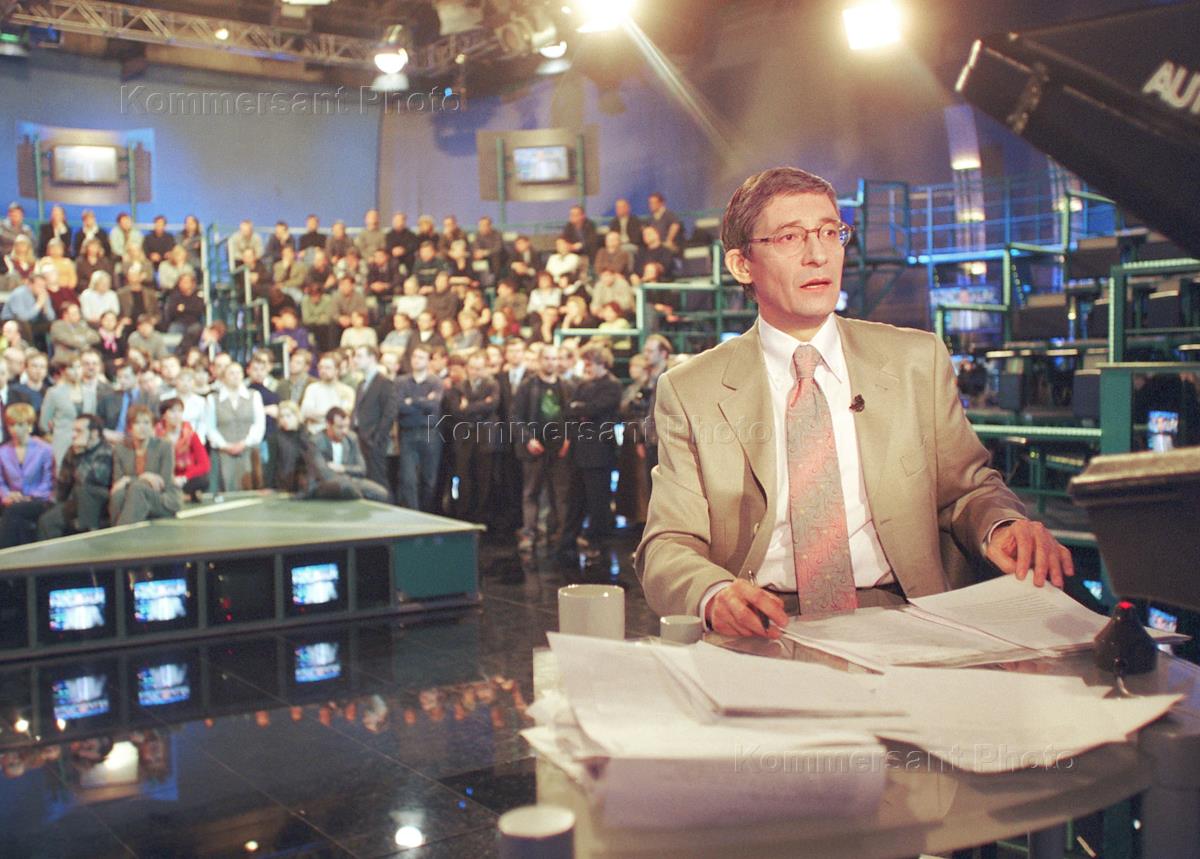 Ведущий программы "Независимое расследование" Николай Николаев (слева) во время эфира экстренного выпуска программы "Итоги", посвященной смене руководства на НТВ. Причиной нового витка конфликта между НТВ и "Газпром-медиа" стало решение саратовского суда о легитимности собрания акционеров. Собрание назначило новое руководство компании.