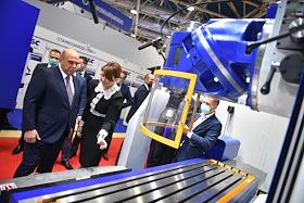 21-ая международная специализированная выставка "Оборудование, приборы и инструменты для металлообрабатывающей промышленности - Металлообработка-2021" в ЦВК "Экспоцентр". Председатель правительства России Михаил Мишустин на выставке.