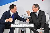XV Всероссийская конференция уполномоченных по защите прав предпринимателей в Центре международной торговли (ЦМТ). Уполномоченный при президенте России по защите прав предпринимателей Борис Титов (слева) и президент общественной организации "Опора России" Александр Калинин (справа) во время конференции.