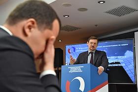 XV Всероссийская конференция уполномоченных по защите прав предпринимателей в Центре международной торговли (ЦМТ). Первый заместитель Генерального прокурора России Александр Буксман во время выступления на конференции.