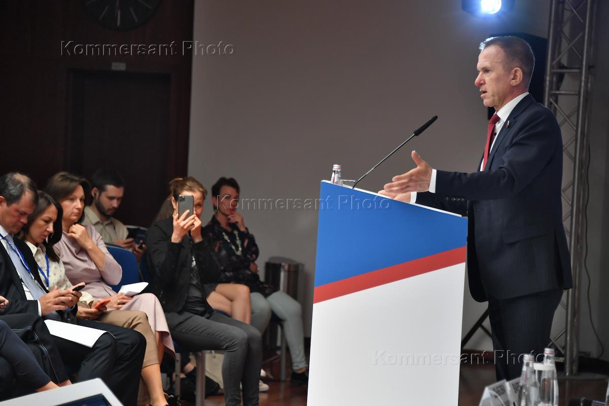 XV Всероссийская конференция уполномоченных по защите прав предпринимателей в Центре международной торговли (ЦМТ). Уполномоченный при президенте России по защите прав предпринимателей Борис Титов во время конференции.