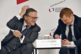 XV Всероссийская конференция уполномоченных по защите прав предпринимателей в Центре международной торговли (ЦМТ). Первый заместитель Генерального прокурора России Александр Буксман (слева) и уполномоченный при президенте России по защите прав предпринимателей Борис Титов (справа) во время конференции.
