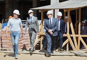 Визит министра просвещения России Сергея Кравцова в Нижний Новгород. Жанровая фотография. Работы по строительству корпуса "Школы 800" в микрорайоне Верхние Печеры.