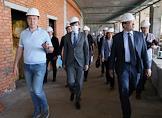 Визит министра просвещения России Сергея Кравцова в Нижний Новгород. Министр просвещения России Сергей Кравцов (второй слева) и губернатор Нижегородской области Глеб Никитин (в центре) во время посещения строительства корпуса "Школы 800" в микрорайоне Верхние Печеры.