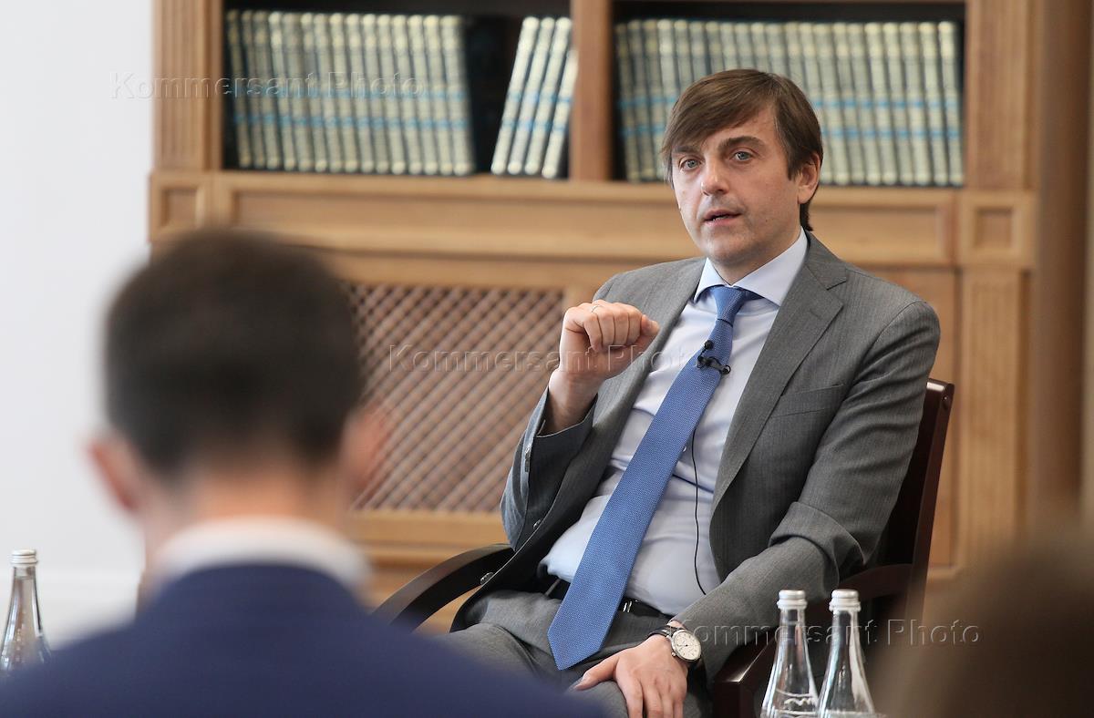 Визит министра просвещения России Сергея Кравцова в Нижний Новгород. Министр просвещения России Сергей Кравцов во время мероприятия "Новое знание в новом мире образования. Дискуссионная площадка Российского общества "Знание" в Нижегородском государственном педагогическом университете им. К. Минина (Мининский университет).