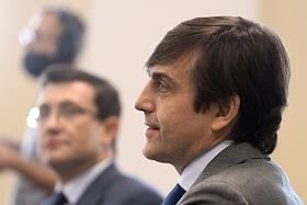 Визит министра просвещения России Сергея Кравцова в Нижний Новгород. Министр просвещения России Сергей Кравцов во время мероприятия "Новое знание в новом мире образования. Дискуссионная площадка Российского общества "Знание" в Нижегородском государственном педагогическом университете им. К. Минина (Мининский университет).