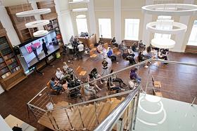 Визит министра просвещения России Сергея Кравцова в Нижний Новгород. Мероприятие "Новое знание в новом мире образования. Дискуссионная площадка Российского общества "Знание" прошло в Нижегородском государственном педагогическом университете им. К. Минина (Мининский университет) при участии министра просвещения России Сергея Кравцова. Участники во время мероприятия.