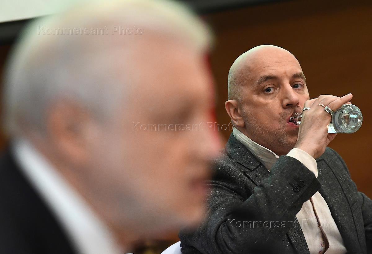 Экспертные слушания на тему: "Россия. Культура. Образ будущего. Какая стратегия развития культуры нужна России?", организованные фракцией "Справедливая Россия". Слушания прошли в здании в Государственной думы (ГД) России. Художественный руководитель театра "Модерн" Юрий Грымов (справа) на слушаниях.