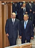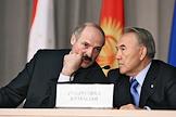 Президент Белоруссии Александр Лукашенко (слева) и президент Казахстана Нурсултан Назарбаев (справа) на Саммите Организации Договора о коллективной безопасности (ОДКБ).