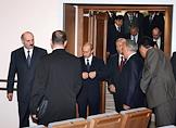Президент России Владимир Путин (в центре в проеме двери), президент Белоруссии Александр Лукашенко (слева) и президент Казахстана Нурсултан Назарбаев (второй справа) на Саммите Организации Договора о коллективной безопасности (ОДКБ).