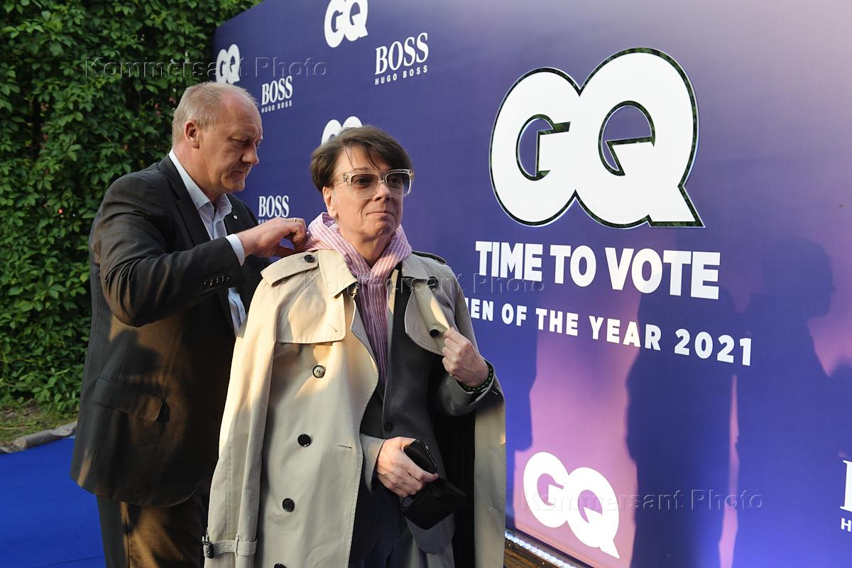 Коктейль, посвященный старту голосования за претендентов на звание "GQ Человек года-2021" русской версии журнала GQ в Императорском Яхт-клубе на Берсеневской набережной. Актер Андрей Бурковский (справа) c супругой Ольгой (слева) на коктейле.