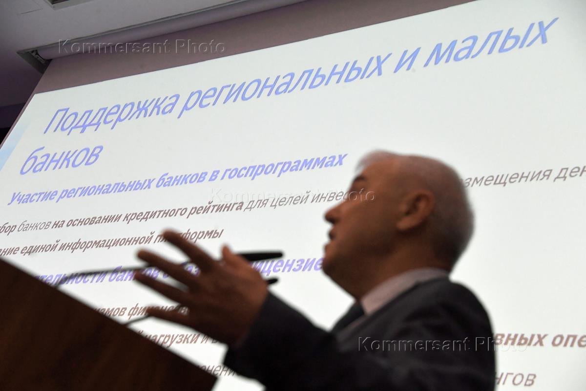 III Съезд Ассоциации банков России "Банки и их роль в реализации Общенационального плана восстановления экономики" в отеле "Хаятт Ридженси Москва Петровский Парк". Заместитель министра финансов России Алексей Моисеев (в центре) во время съезда.