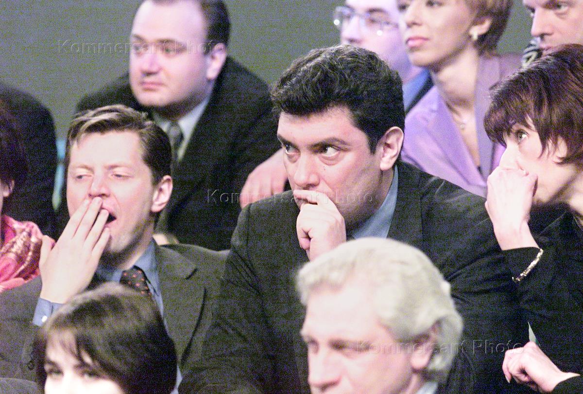 Union of Right Forces leader Boris Nemtsov poses during the special programme 'Itogi' on the change of NTV governing body.