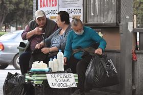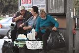 Виды Ялты. Жанровая фотография. Уличная торговля. Пожилая женщина продает молоко и творог.