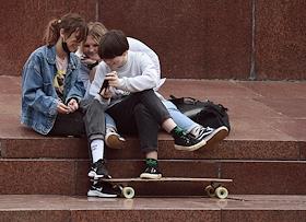 Виды Ялты. Жанровая фотография. Девочки с мобильным телефоном.