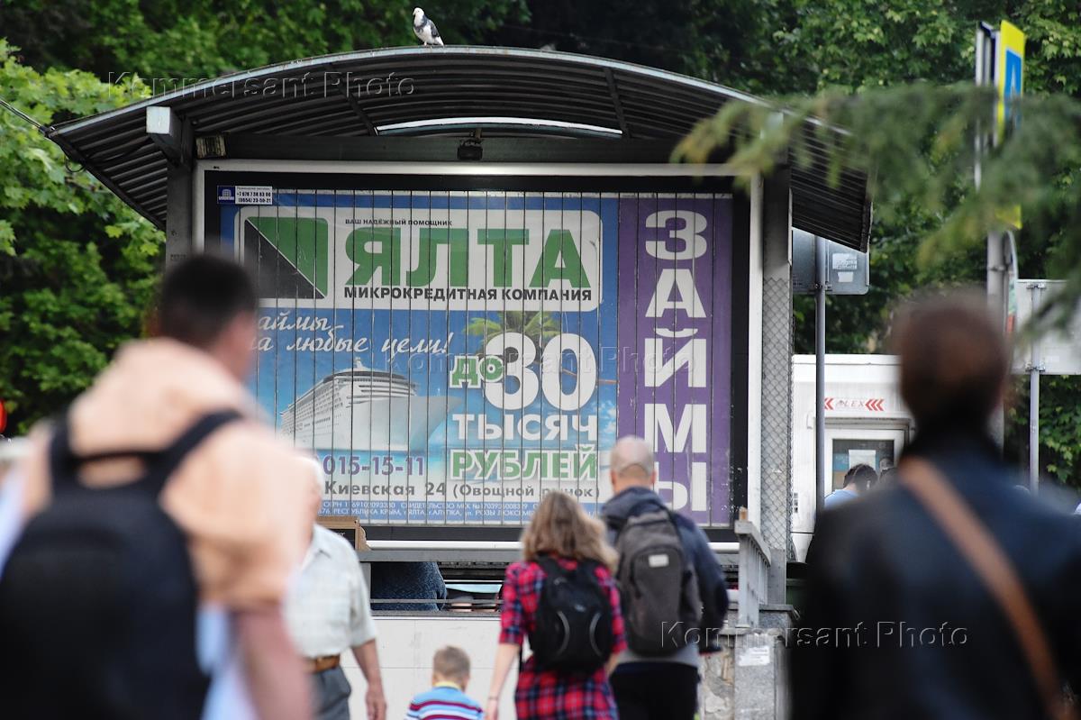 Виды Ялты. Жанровая фотография. Уличная торговля. Реклама микрокредитной организации.
