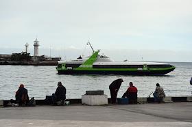 Жанровая фотография. Частная яхта в Черном море. Рыбаки с удочками на пирсе.