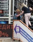 Виды Ялты. Жанровая фотография. Женщину у мастерской по ремонту телефонов и цифровой техники.