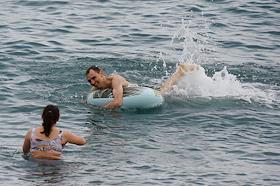 Виды Ялты. Жанровая фотография. Отдыхающие купаются в море.