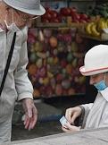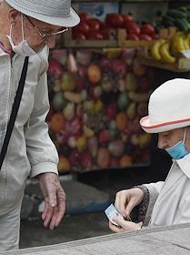 Виды Ялты. Жанровая фотография. Пожилые мужчина и женщина с денежными купюрами.