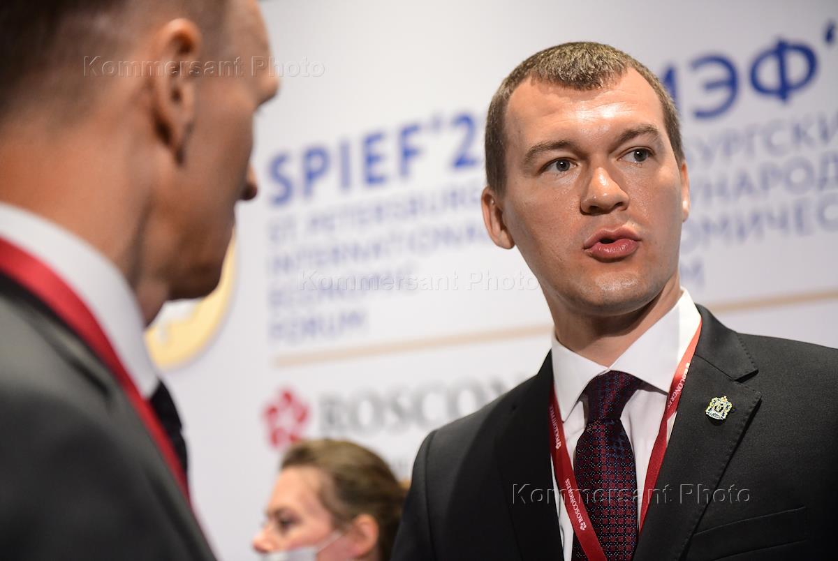 XXIV Петербургский международный экономический форум (ПМЭФ) 2021 прошел в конгрессно-выставочном центре "Экспофорум". Временно исполняющий обязанности губернатора Хабаровского края Михаил Дегтярев во время форума.
